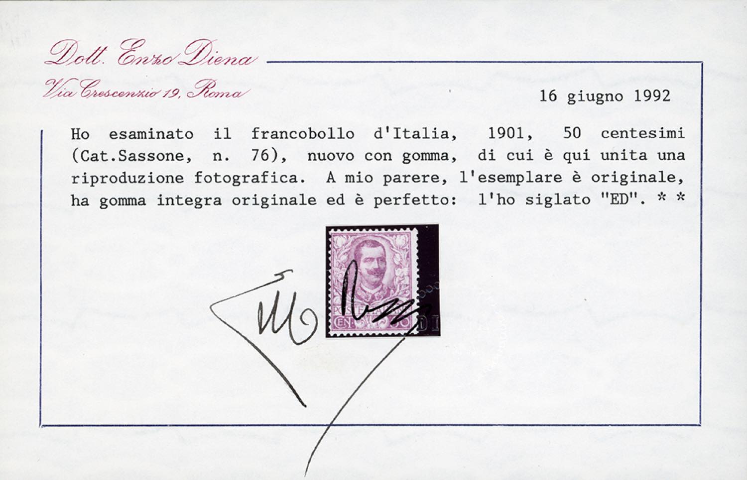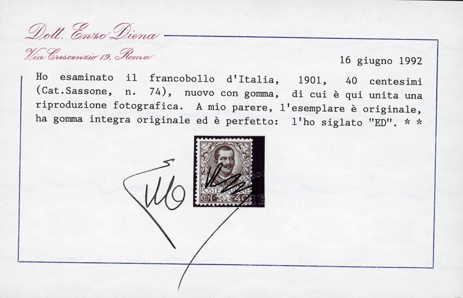 1901 - Floreale, serie completa (68/78), gomma originale integra, perfetti. Cert. E.Diena per il 40 e il 50 cent.