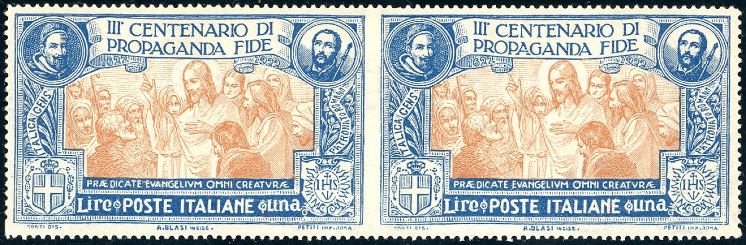 Lotto 1283 - 1923 - 1 lira Propaganda Fide, coppia orizzontale non ...