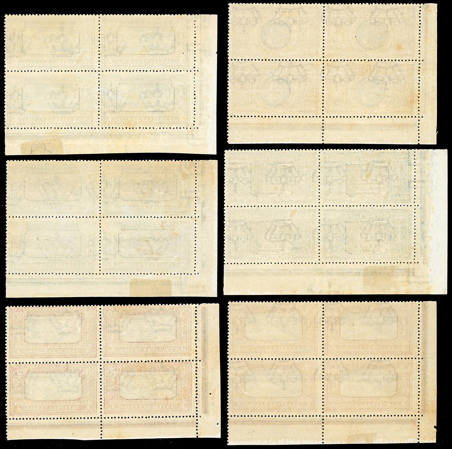 1923 - Manzoni, serie completa in blocchi di quattro, angolo di foglio superiore destro (151/156), nuovi, gomma originale integra, ... Leggi tutto