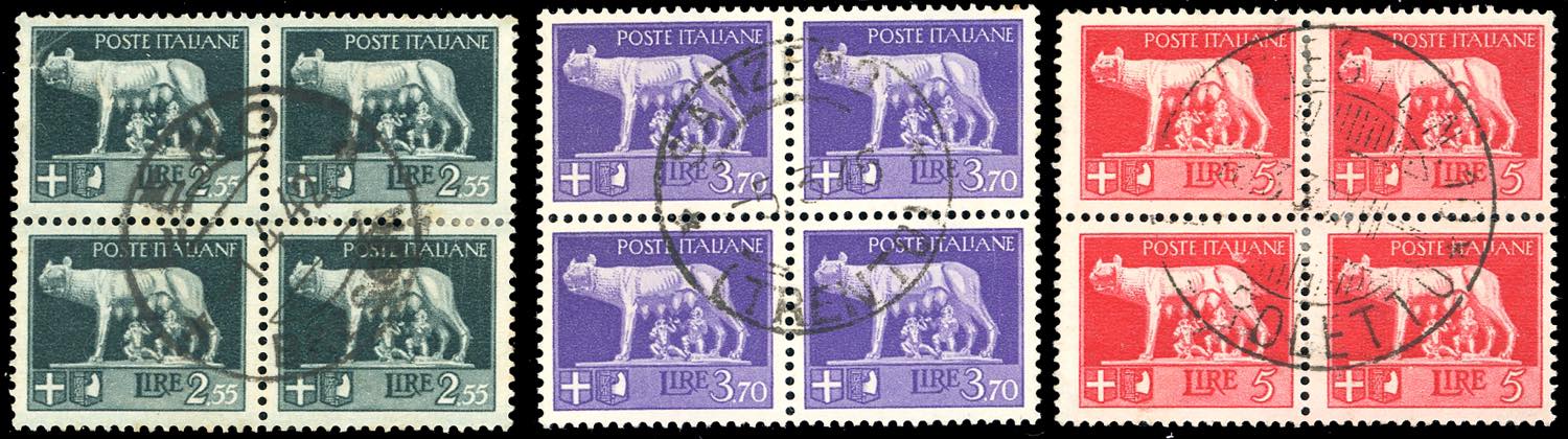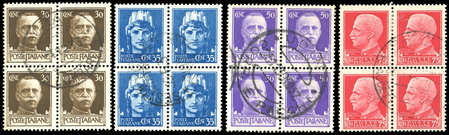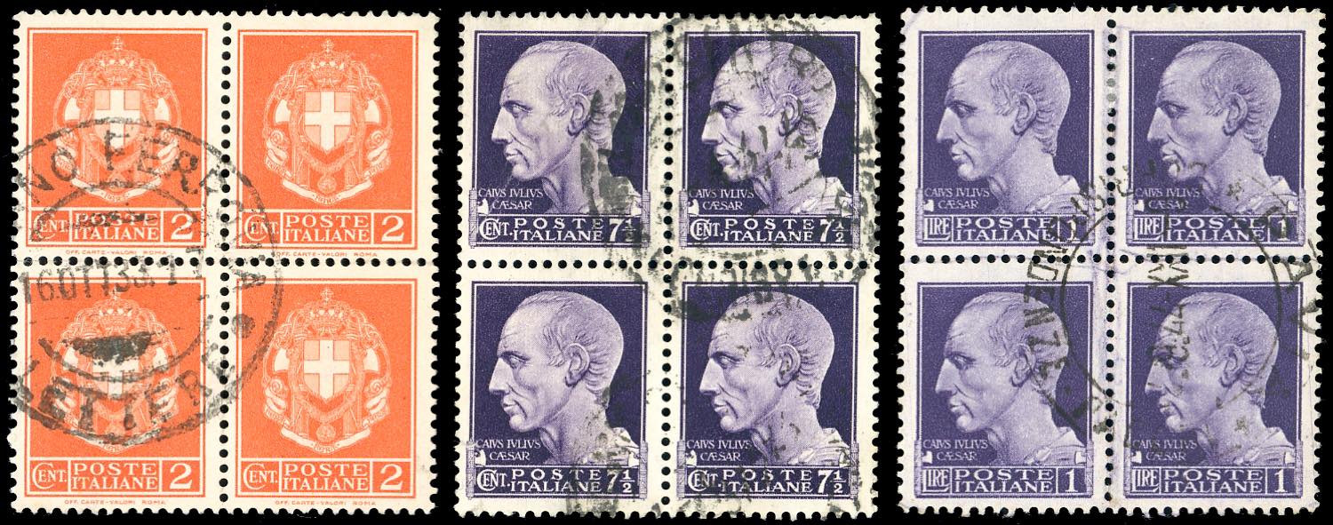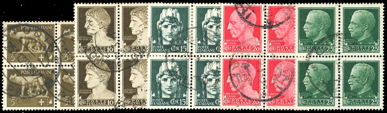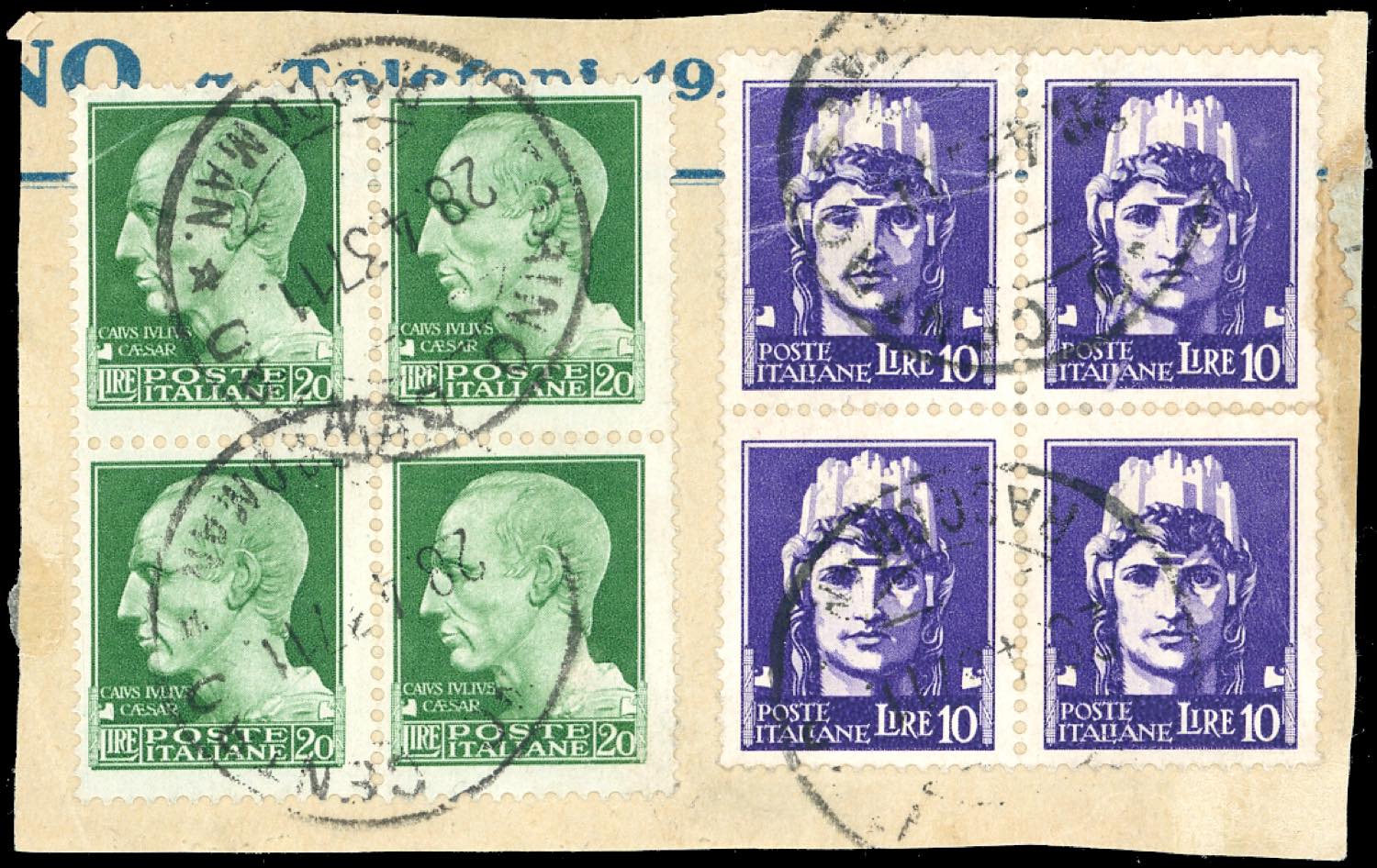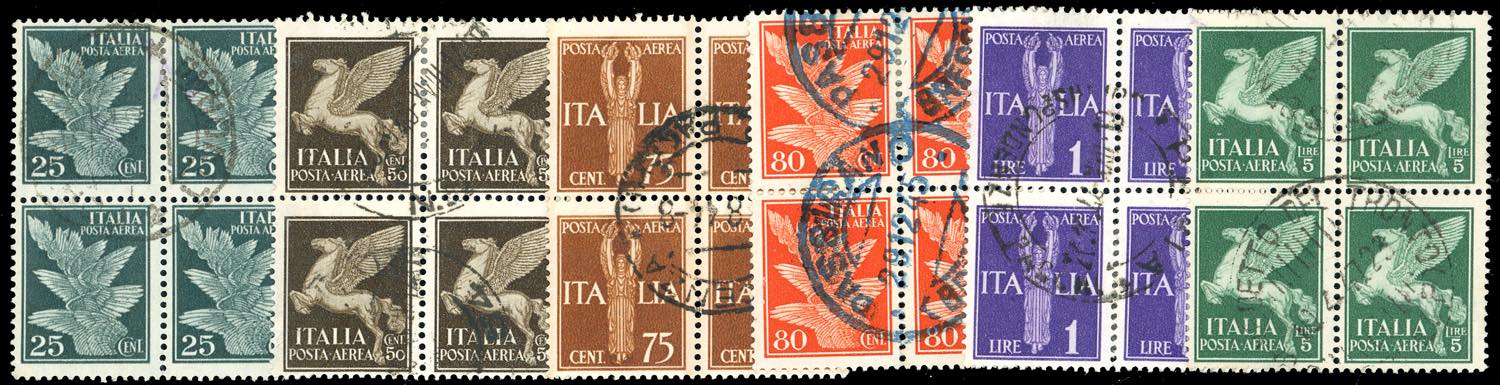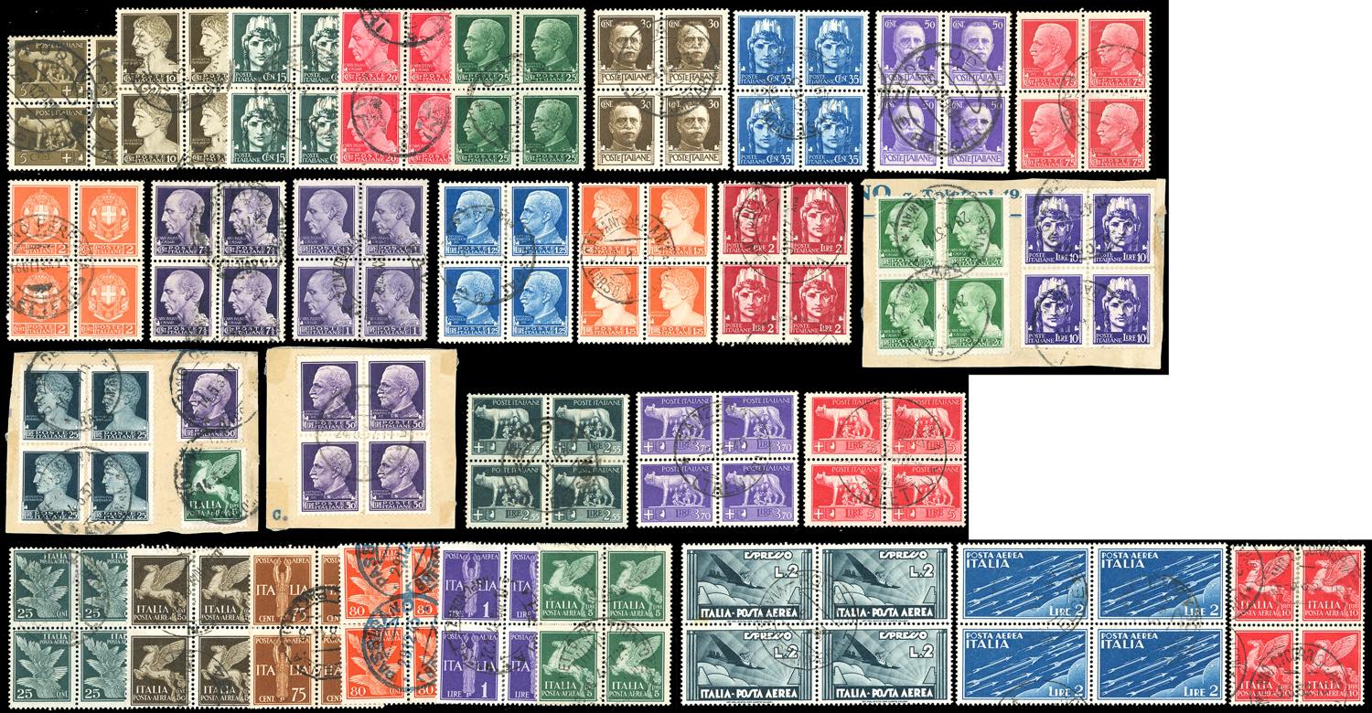 1929/42 - Imperiale, posta ordinaria e posta aerea, serie complete (242A,261,A10/A17), blocchi di quattro, usati, perfetti. Raro insieme! ... Leggi tutto