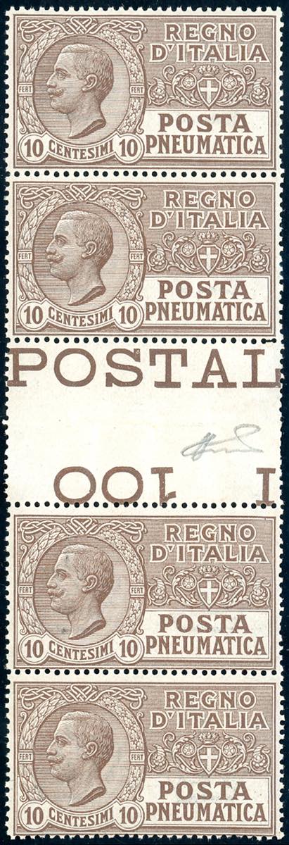 Lotto 1473 - 1913 - 10 cent. bruno (1), stirscia verticale di quattro ...