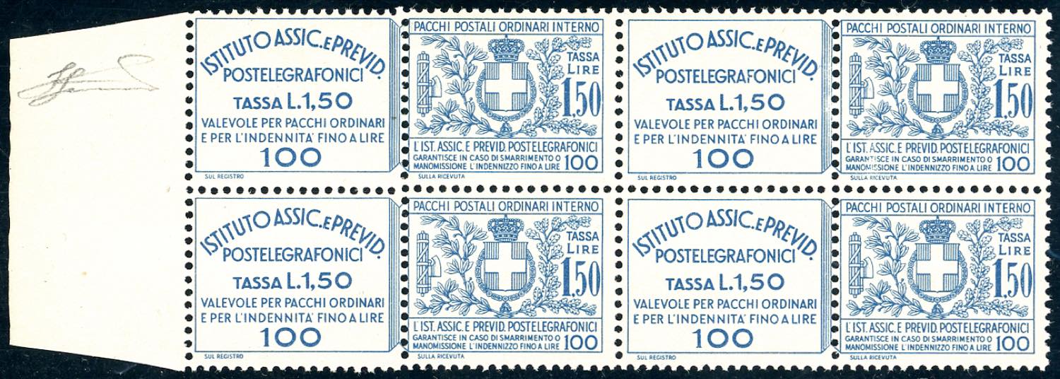 1936 - 1,50 lire Assicurazioni Postelegrafonici (17), blocco di quattro, gomma originale integra, perfetto. Ferrario.