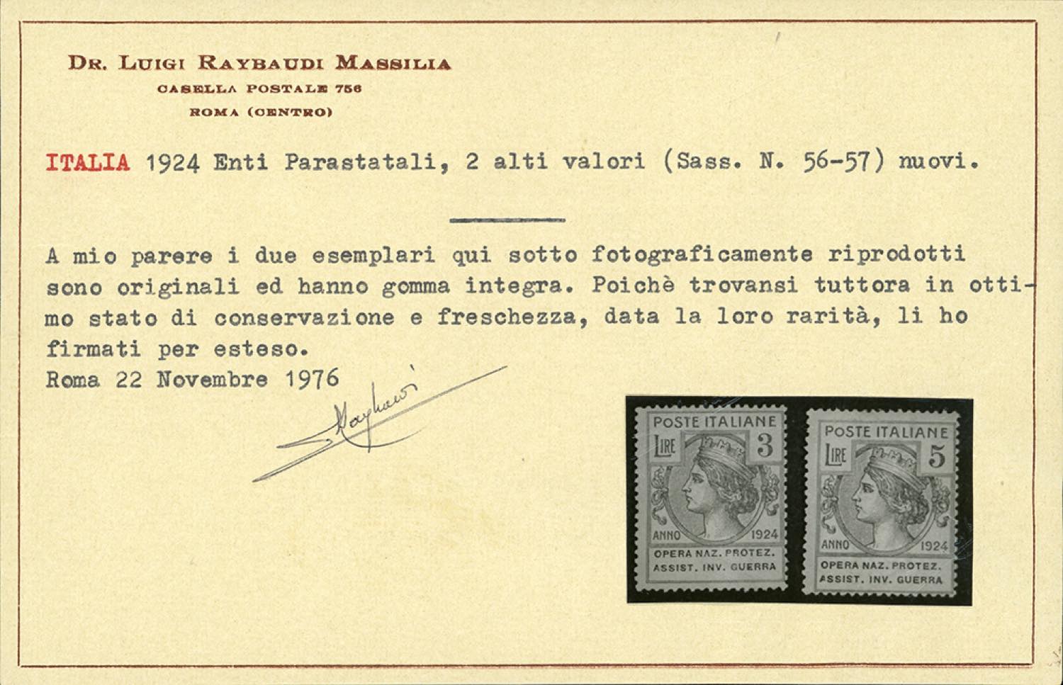 OPERA NAZ.PROTEZ.ASSIST.INV.GUERRA-ROMA 1924 - Serie completa (50/57), gomma originale integra, perfetti. Rara e di ottima qualità. A.Diena, Chiavarello, cert. Raybaudi e Ferrario per i due alti valori.