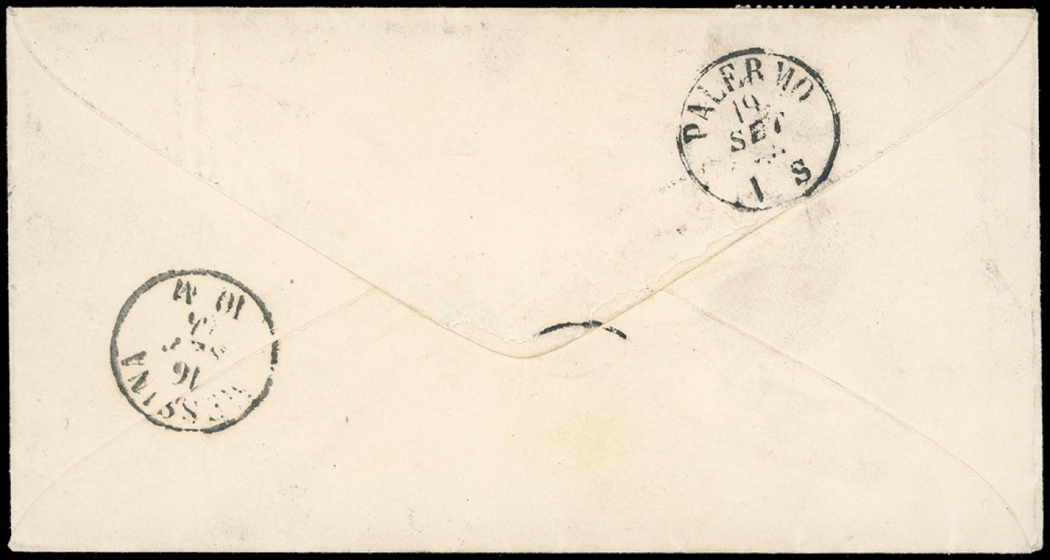 ALESSANDRIA D'EGITTO 1864 - 40 cent. De La Rue, tiratura di Londra (L20), due coppie, perfette, annullate con il bollo "PIROSCAFI POSTALI FRANCESI", in cartella (punti 13), su busta da Alessandria d'Egitto 12/9/1864 a Palermo. Splendida e rara affrancatura multipla. Ferrario.