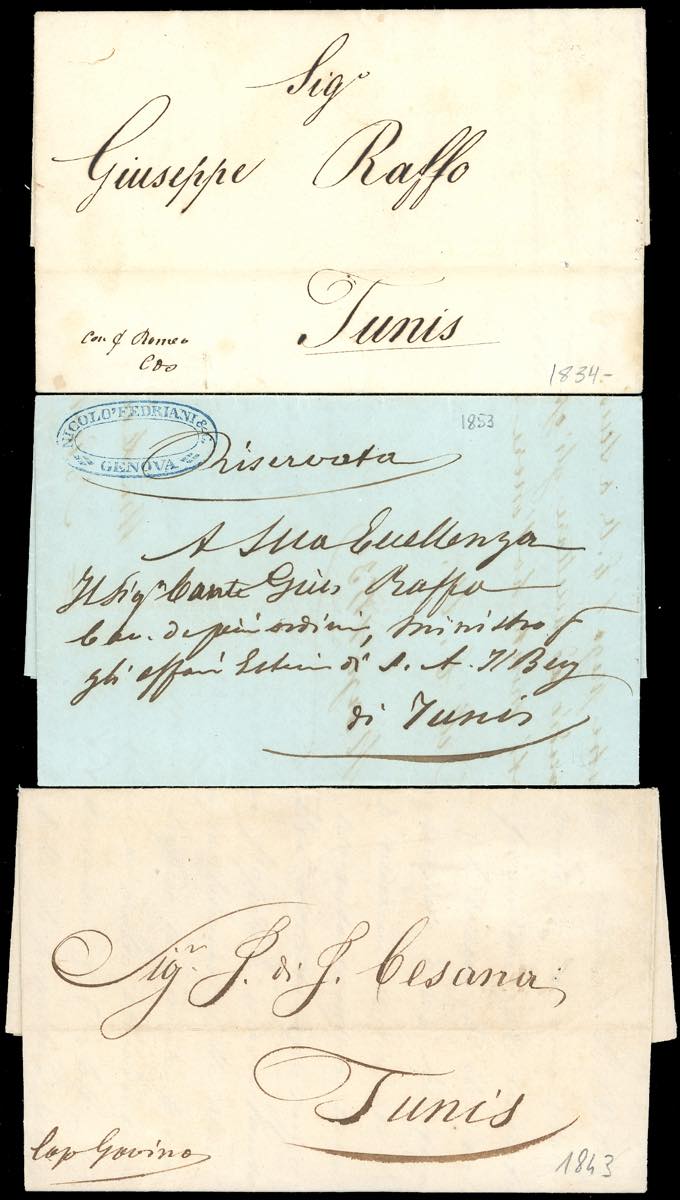 Lotto 2263 - TUNISI 1834/53 - Cinque lettere del periodo da Genova a ...