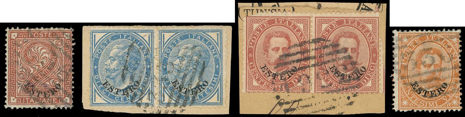 LA GOLETTA 1874/81 - Sei esemplari soprastampati (2,10,13,14), generalmente in ottimo stato, usati con il numerale a sbarre "3336", punti ... Leggi tutto