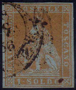 Lotto 860 - 1851 - 1 soldo giallo bistro su azzurro (2b), usato, ...