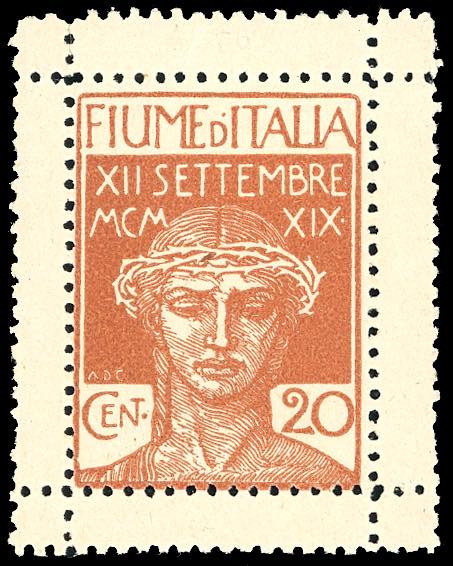 Lotto 247 - 1920 - 20 cent. Legionari, dicitura "FIUME D'ITALIA" (129, ...