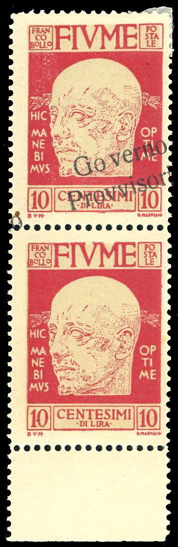 1921 - 10 cent. soprastampato "Governo Provvisorio", senza trattino in basso, coppia verticale, un esemplare con la soprastampa obliqua, ... Leggi tutto