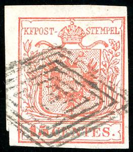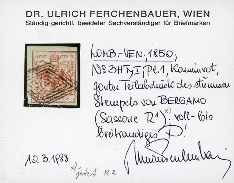 BERGAMO, muto punti R2 - 15 cent. (3), perfetto, usato. Raro. Cert. Ferchenbauer.