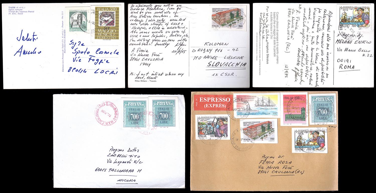 REPUBBLICA ITALIANA INTERI POSTALI 1992/1995 - Bell'insieme di due buste e tre cartoline, tutte affrancate con ritagli di interi postali. ... Leggi tutto