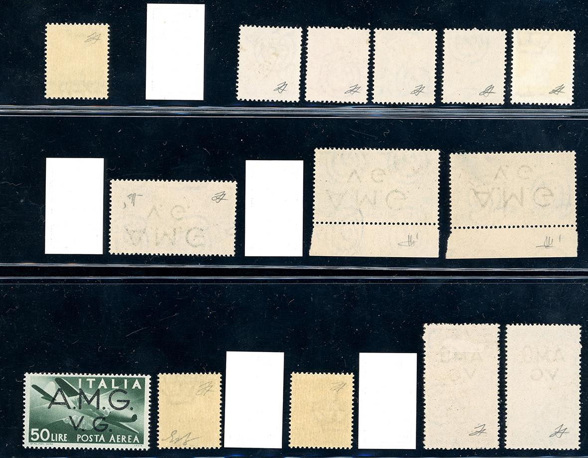 AMG VG 1945/1947 - Bell'insieme di 14 francobolli, nuovi ed usati, con varietà, anche rare, perfetti. Ottima qualità, occasione. Tutti ... Leggi tutto