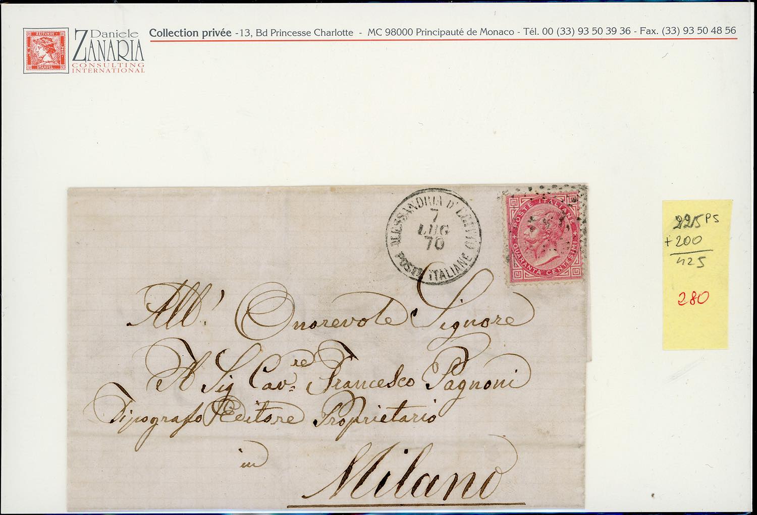 UFFICI ITALIANI ALL'ESTERO 1866/1885 - Bell'insieme di nove lettere affrancate in partenza dagli uffici di Tunisi ed Alessandria d'Egitto, ... Leggi tutto