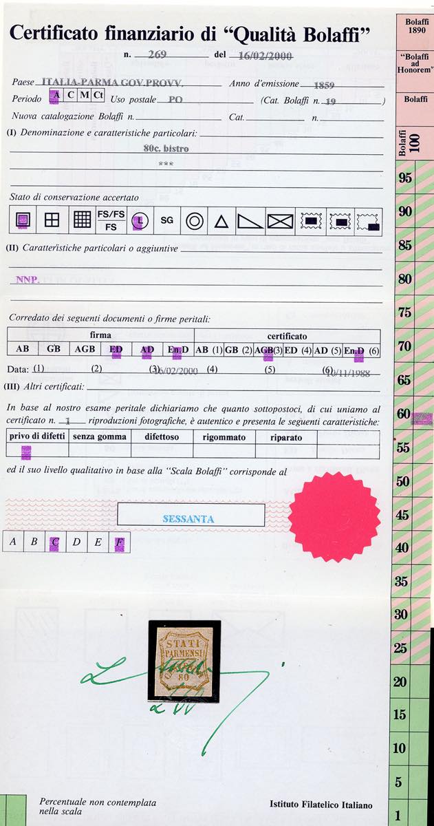 Lotto 174 - 1859 - 80 cent. bistro arancio (18b), pos. 34 della ...