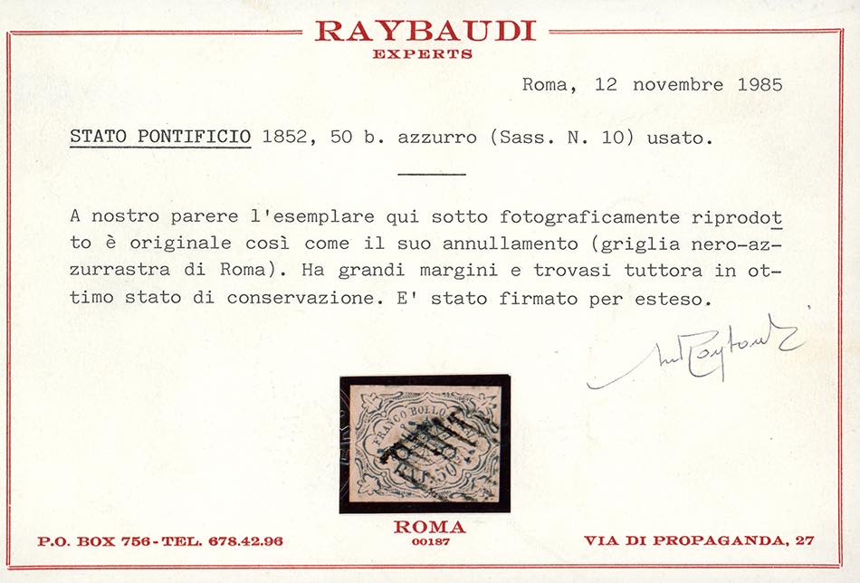 1852 - La serie completa dei dodici valori emessi, nei tipi più comuni (1/12), usati, perfetti. Il n. 10 A.Diena, cert. Raybaudi, il n. 11 ... Leggi tutto
