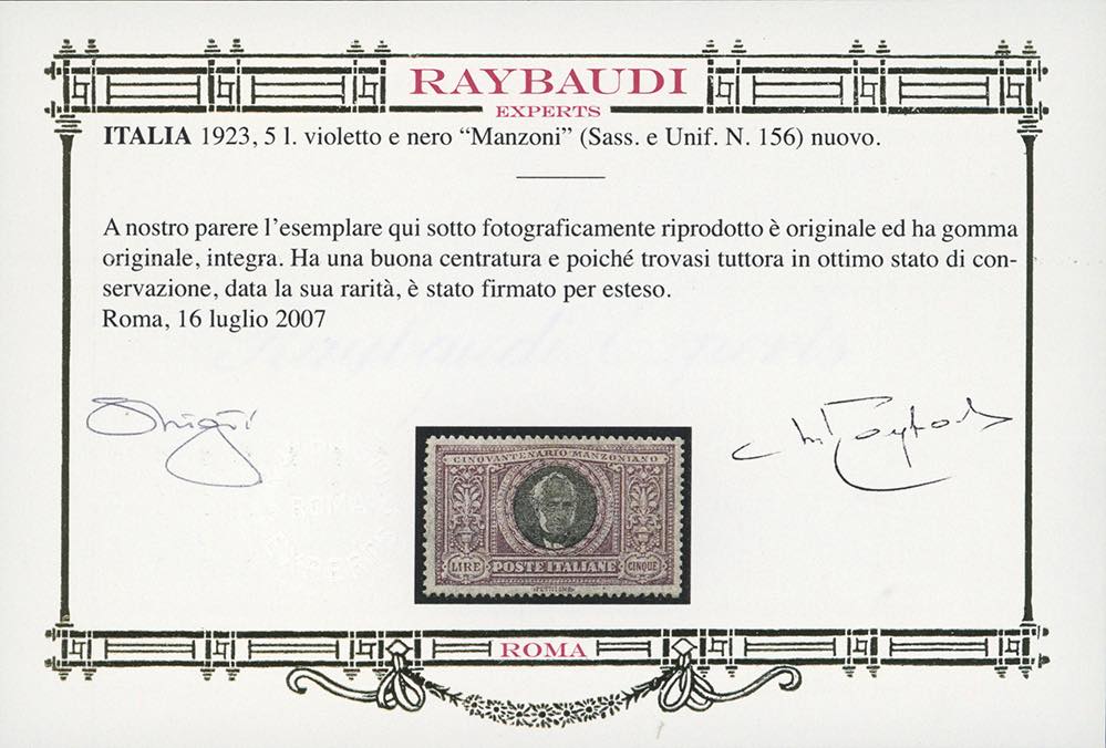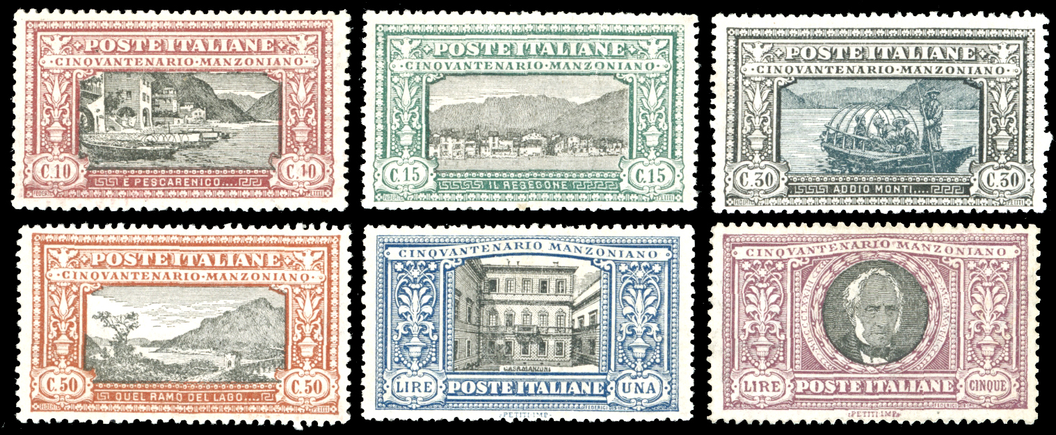 1923 - Manzoni, serie completa (151/156), otitma centratura, gomma originale integra, perfetti. Molto belli. Cert. Oro Raybaudi per il 5 lire.