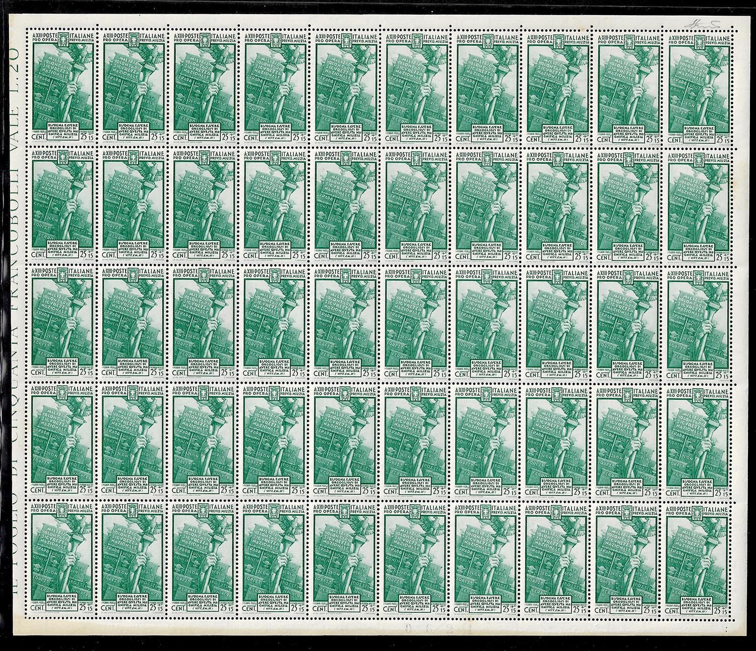 1935 - Milizia IV emissione, serie completa (380/383+A89), fogli nuovi di 50 esemplari, gomma originale integra, perfetti, ottima qualità. ... Leggi tutto