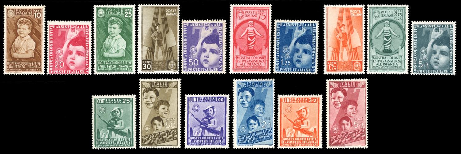 Lotto 726 - 1937 - Colonie estive, serie completa (406/415+A), gomma ...