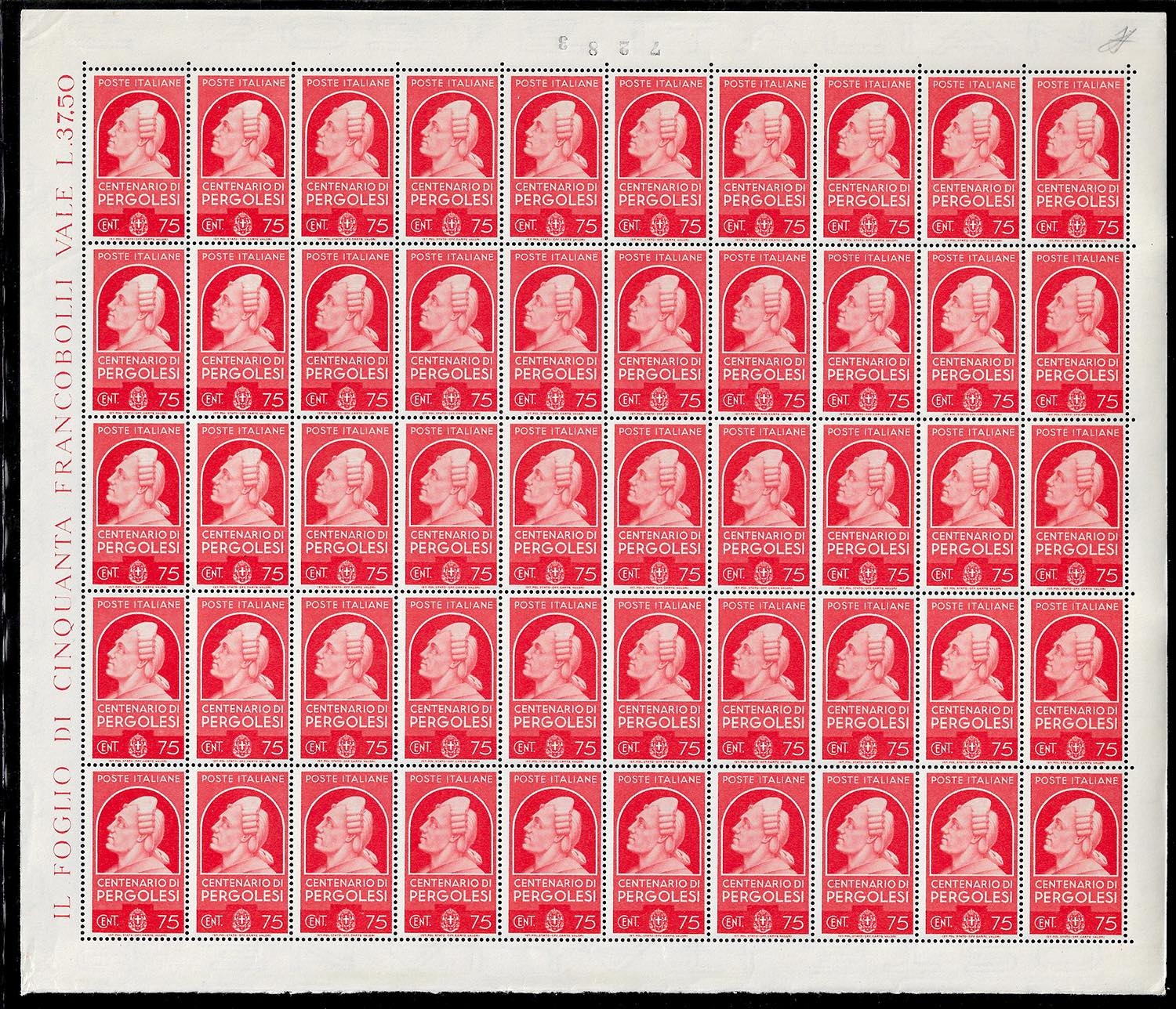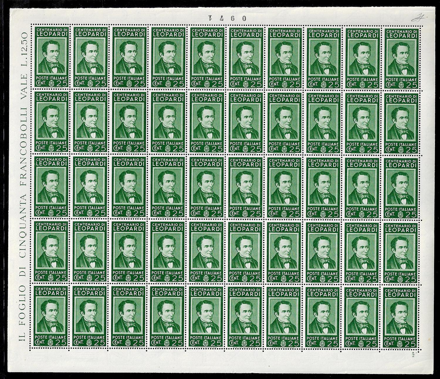 1937 - Uomini illustri, serie completa (426/435), fogli nuovi di 50 esemplari, gomma originale integra, perfetti, ottima qualità. ... Leggi tutto