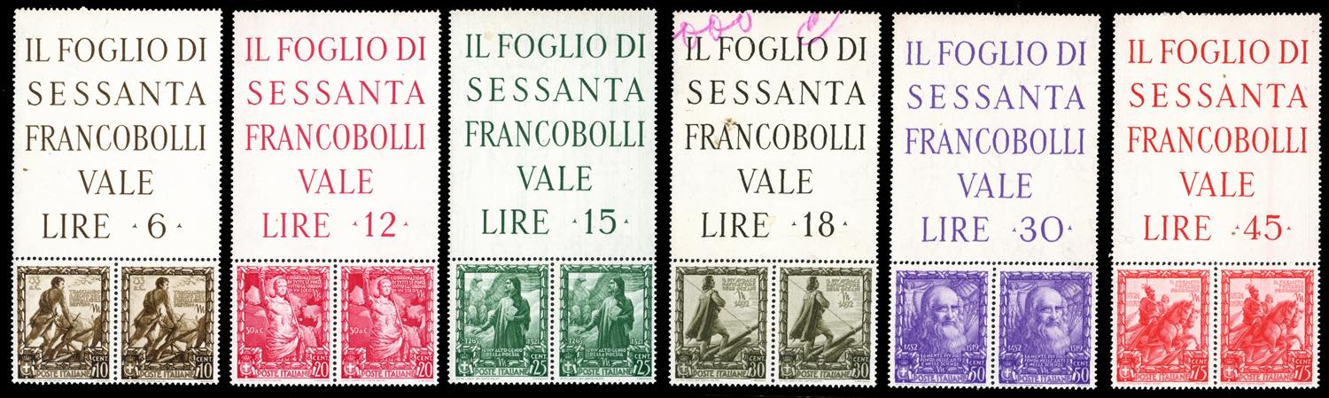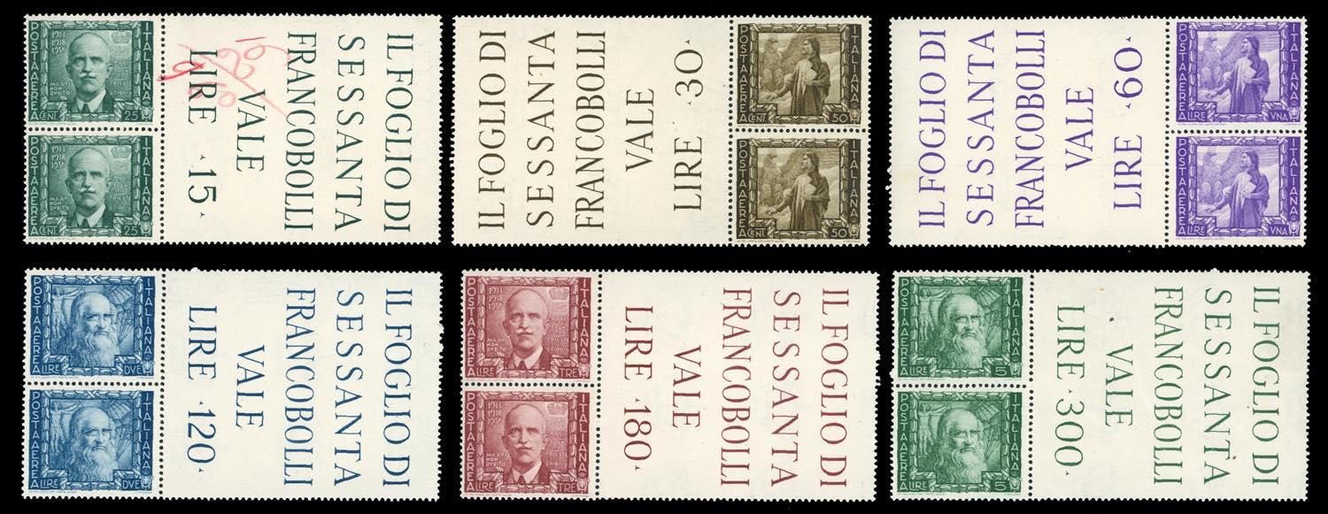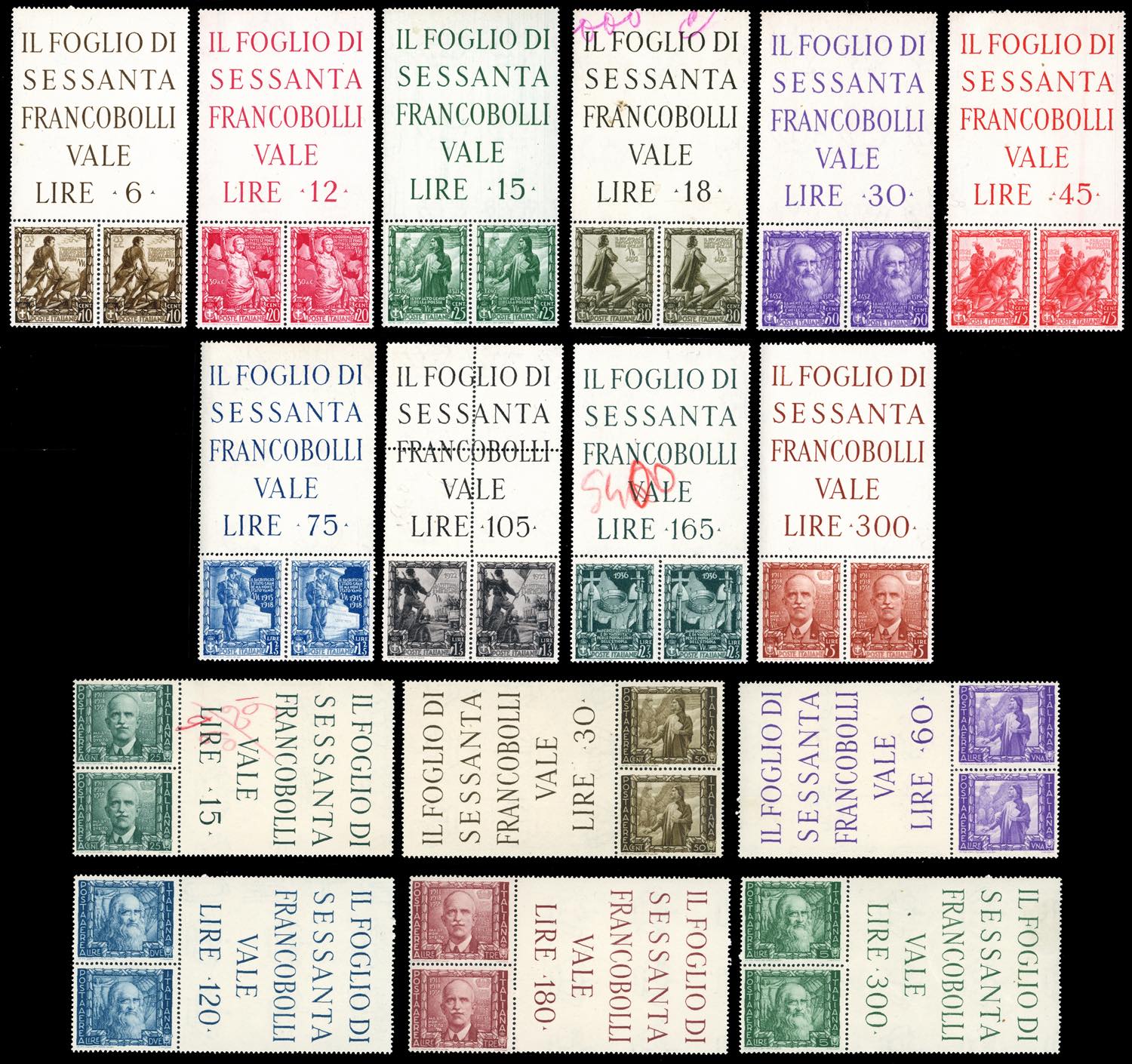 1938 - Impero, coppie orizzontali con il blocco angolare, serie completa (439/448+A), gomma originale integra, perfette. Rare.