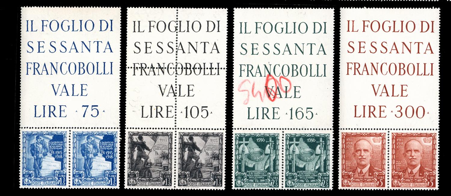 Lotto 734 - 1938 - Impero, coppie orizzontali con il blocco angolare, ...