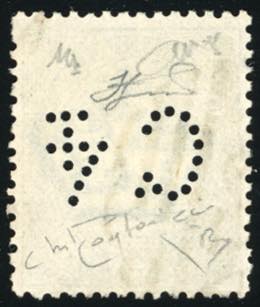 FRANCALETTERE 1887 - 4 cent. su 5 cent. verde, perforazione "C4" speculare e capovolta (2a/2b), usato, perfetto. Si tratta dell'UNICO ESEMPLARE NOTO sia nuovo che usato e non catalogato. Rarità del settore! Raybaudi, Enzo Diena, cert. Ferrario.