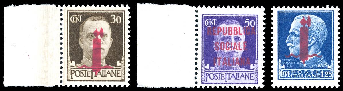 Lotto 1021 - 1944 - I tre valori soprastampati in carminio lillaceo, ...