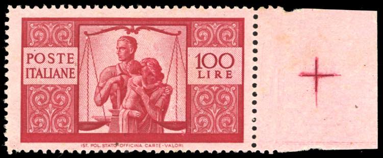 Lotto 1124 - 1946 - 100 lire Democratica, I lastra, dent. 14 x 14, CARTA ...