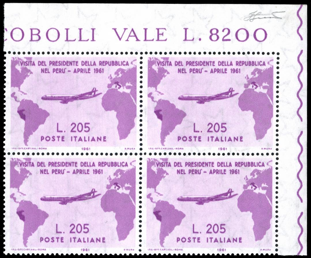 Lotto 1184 - 1961 - 205 Gronchi rosa (921), blocco di quattro, angolo di ...