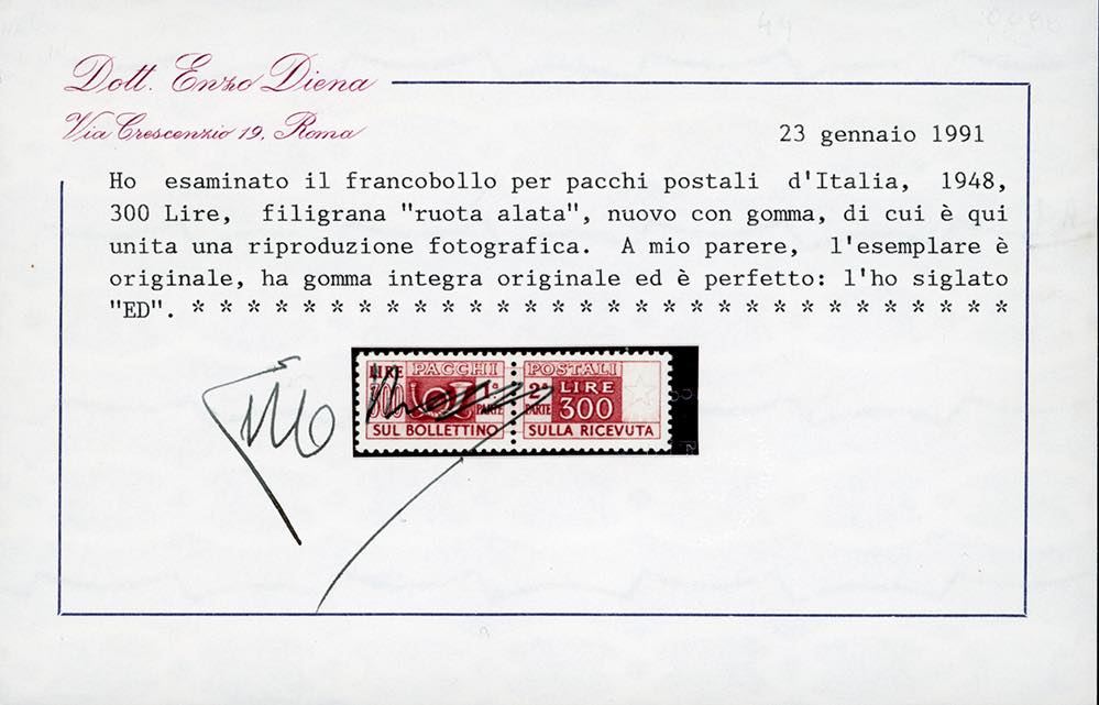 Lotto 1215 - 1948 - 300 lire filigrana ruota (79), nuovo, gomma ...