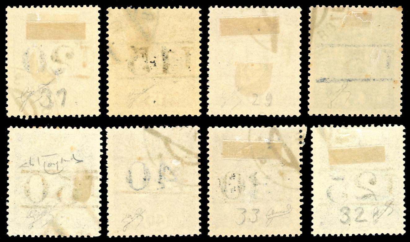 TRENTINO ALTO ADIGE-SEGNATASSE BOLZANO 1918/19 - Soprastampati "T" e cifra fra due righe in orizzontale, serietta di 8 valori (BZ3/1-BZ3/8), usati, perfetti, Raybaudi per l'alto valore.
