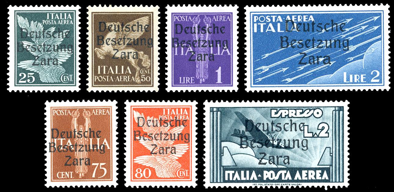 Lotto 1531 - OCCUPAZIONE TEDESCA ZARA POSTA AEREA 1943 - Serietta di 7 ...