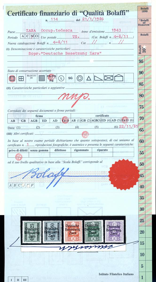 Lotto 1534 - OCCUPAZIONE TEDESCA ZARA SEGNATASSE 1943 - Soprastampati, ...