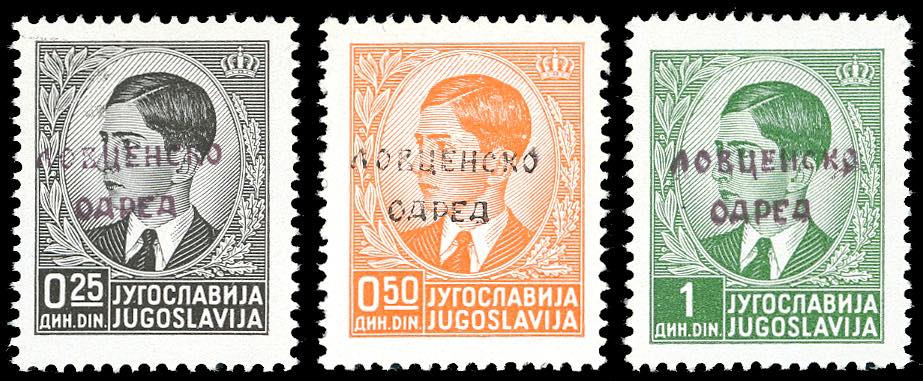 MONTENEGRO PARTIGIANI DEL LOVCEN 1941 - 25 p. e 1 d. sovrastampa in nero violaceo, 50 d. soprastampa in nero, gomma originale integra, perfetti. Molto belli. Ferrario.