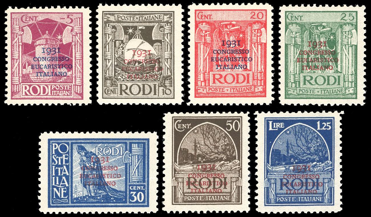 1931 - Congresso Eucaristico, serie completa (30/36), gomma originale integra, perfetti. Molto belli. Ferrario.