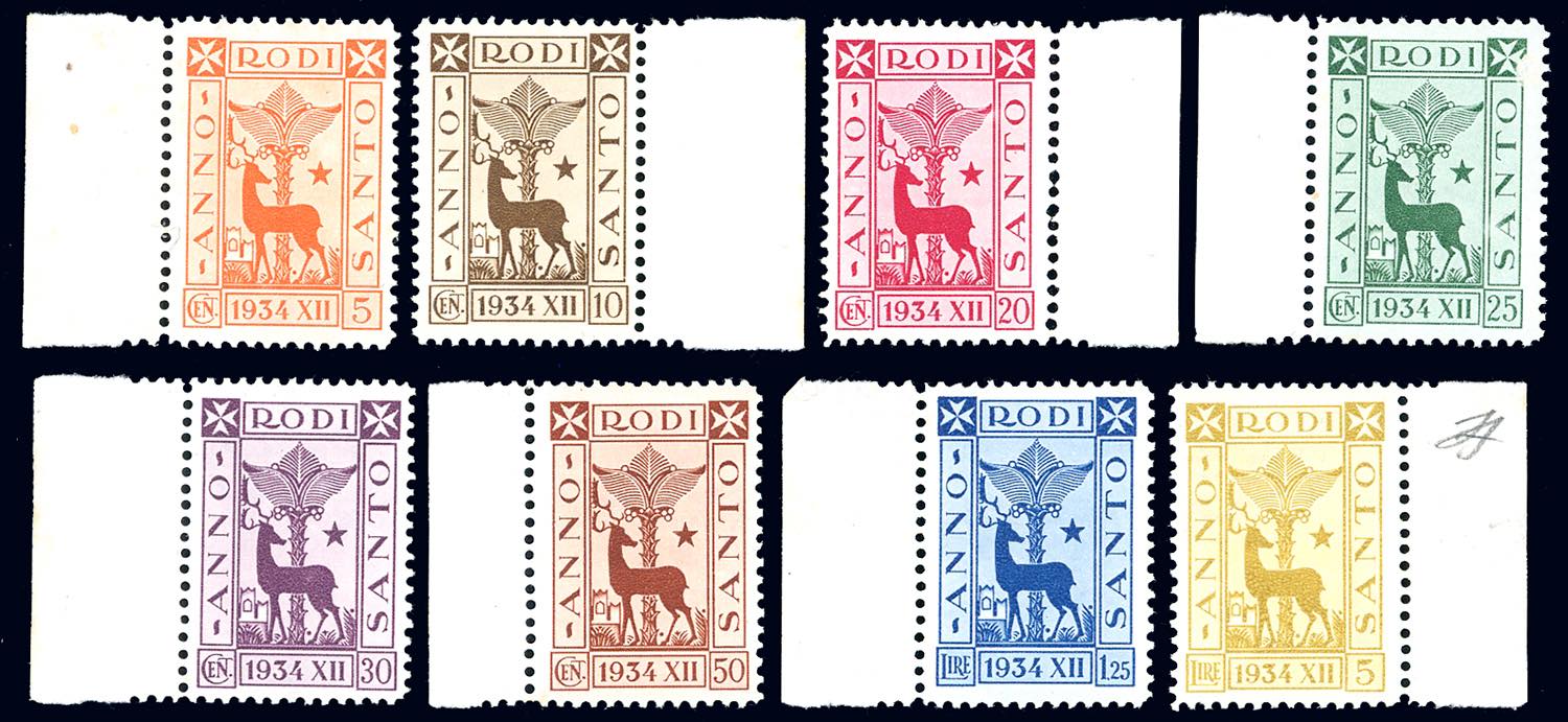 1935 - Anno Santo, serie completa (91/98), bordo di foglio, gomma originale integra, perfetti. Ferrauo per l'alto valore.