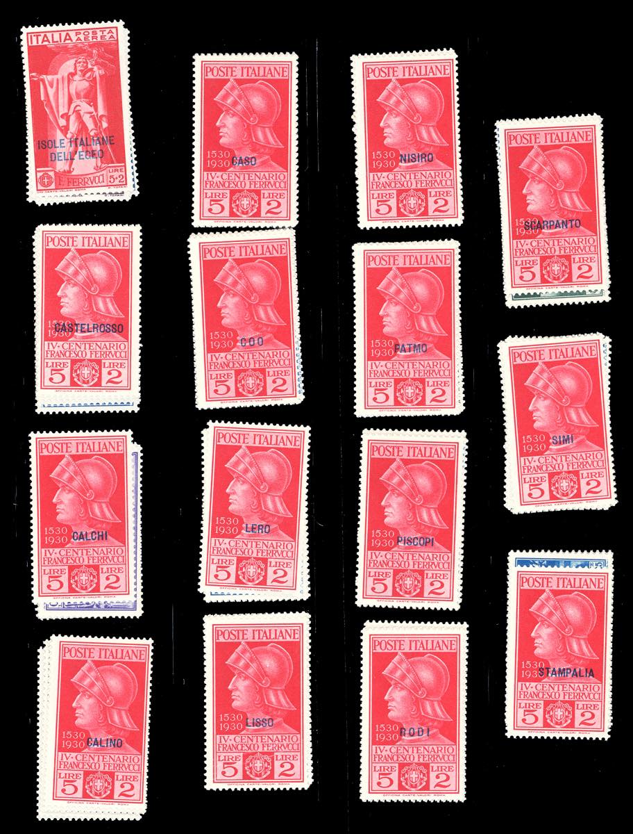 GIRO COMPLETO 1930 - Ferrucci, giro completo comprendente le tredici isole, Castelrosso e la serie di posta aerea, serie complete, gomma originale integra, perfetti. Ottima qualità.
