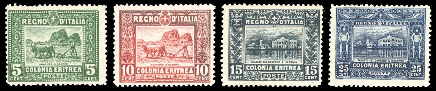 1910/14 - Soggetti africani, dent. 13 1/4, serie completa (34/37), gomma originale integra, perfetti. E.Diena, Ferrario.