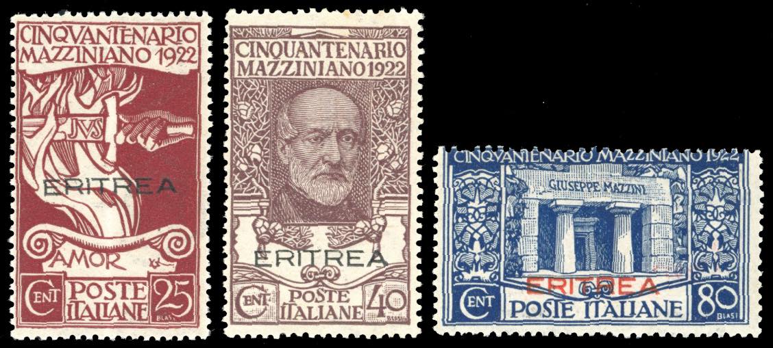 1922 - Mazzini soprastampati, saggi, serie completa (P1/P3), nuovi, gomma originale integra, perfetti e di ottima qualità. Estremamente ... Leggi tutto
