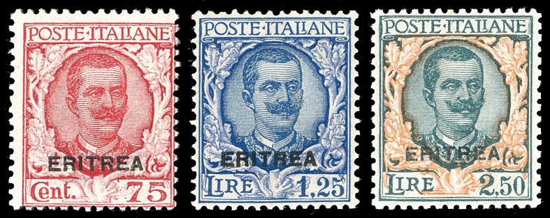 Lotto 1687 - 1926 - Soprastampati "Eritrea", serie completa (113/115), ...