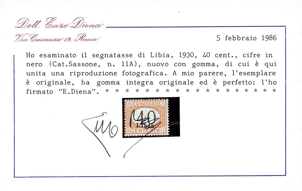 SEGNATASSE 1930 - 40 cent. arancio, cifre nere (11A), nuovo, gomma originale integra, perfetto. Freschissimo e splendido. Questo raro francobollo, di cui esistono solo 100 esemplari provenienti da un unico foglio, non esiste centrato, qualitativamente questo è uno dei migliori esistenti. Cert. Ferrario ed Enzo Diena 1986.
