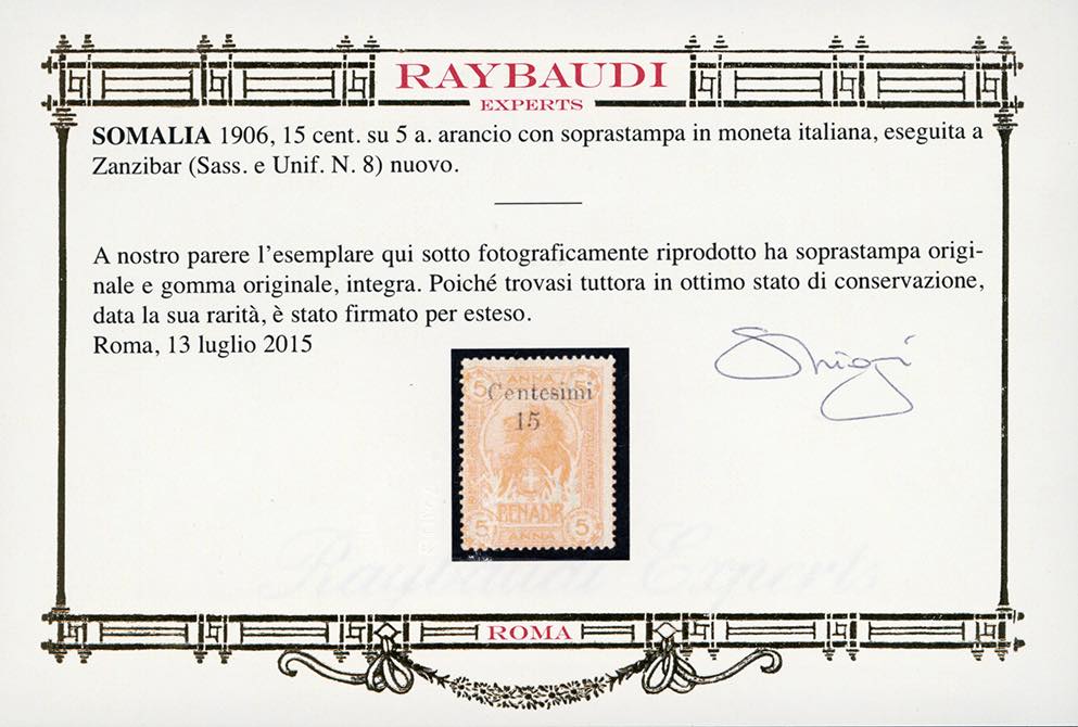 1905 - Soprastampa di Zanzibar, serie completa (8/9), gomma originale integra, perfetti. Per il 15 cent. Em.Diena, cert. A.Diena e Oro Raybaudi, per il 40 cent. A.Diena e Raybaudi.
