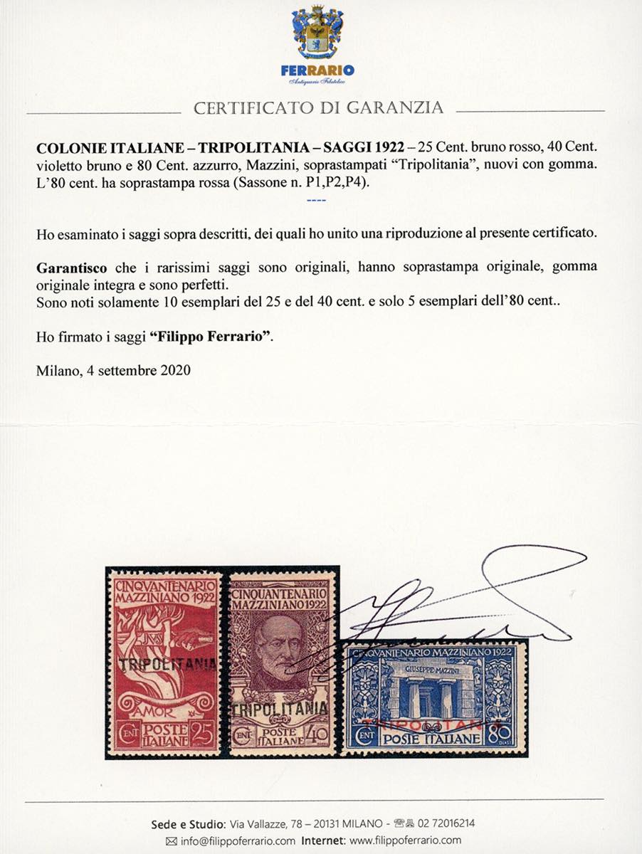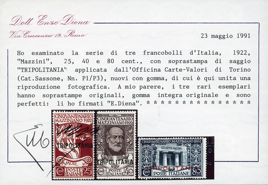 1922 - Mazzini soprastampati, saggi, serie completa (P1/P3), gomma originale integra, perfetti. Estremamente rari, TIRATURA SOLO 10 SERIE. ... Leggi tutto