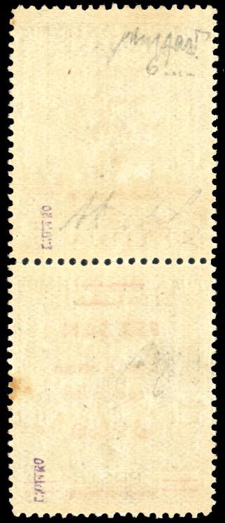 OCCUPAZIONE FRANCESE FEZZAN 1943 - 3,50 fr. su 25 cent., soprastampa fortemente spostata in alto, senza la dicitura "Fezzan", in coppia con ... Leggi tutto
