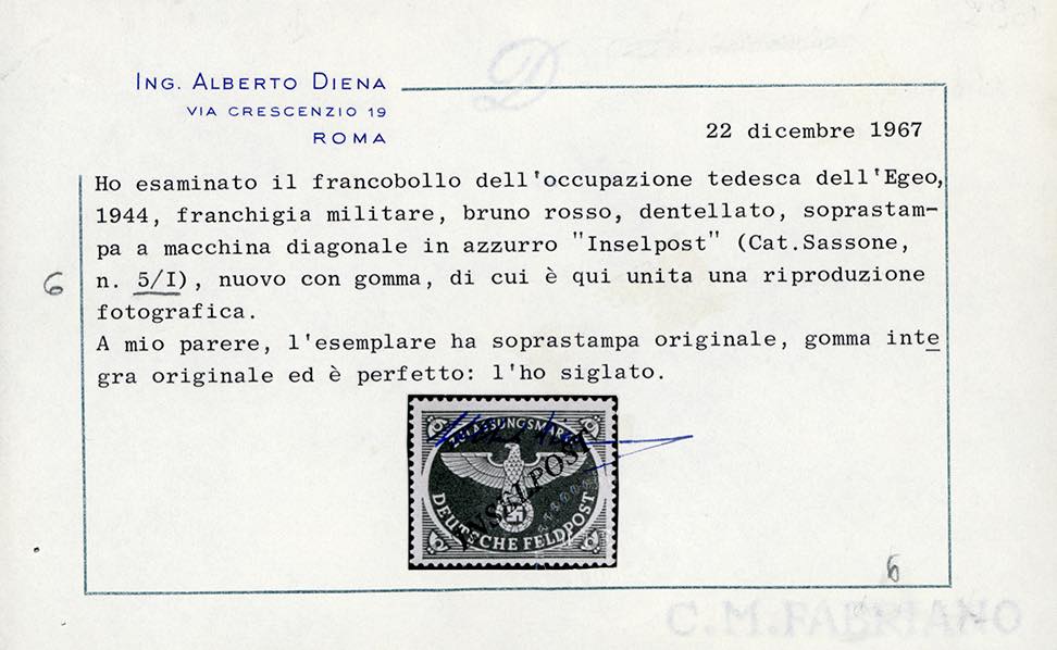 Lotto 1889 - OCCUPAZIONE TEDESCA EGEO 1944 - Bruno rosso, soprastampa di ...