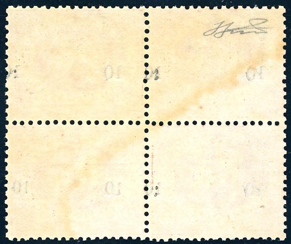 Lotto 1914 - 1892 - 10 cent. su 20 cent. (11), blocco di quattro, un ...