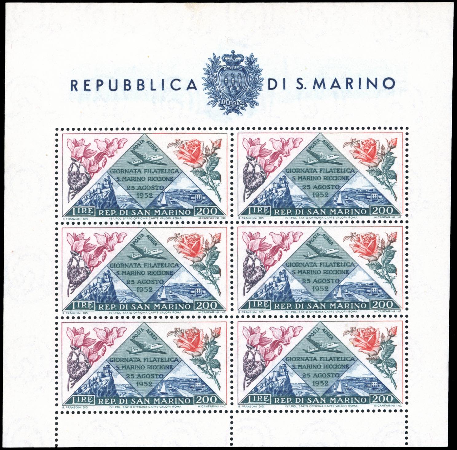Lotto 1963 - 1952 - 200 lire Giornata Filatelica-Fiori, foglietto (14), ...