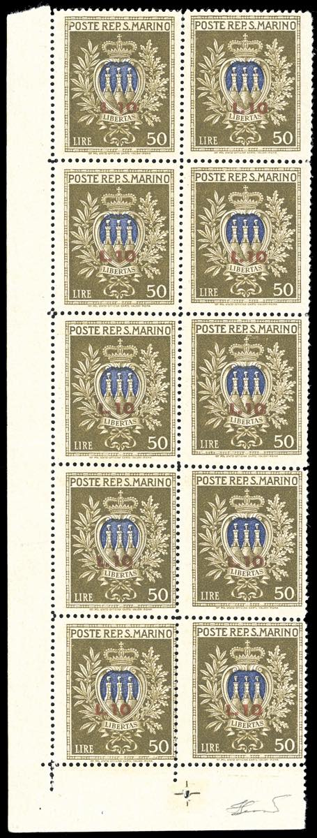 Lotto 1969 - 1946 - 10 lire su 50 lire Pro Opere Assistenza, minifoglio ...