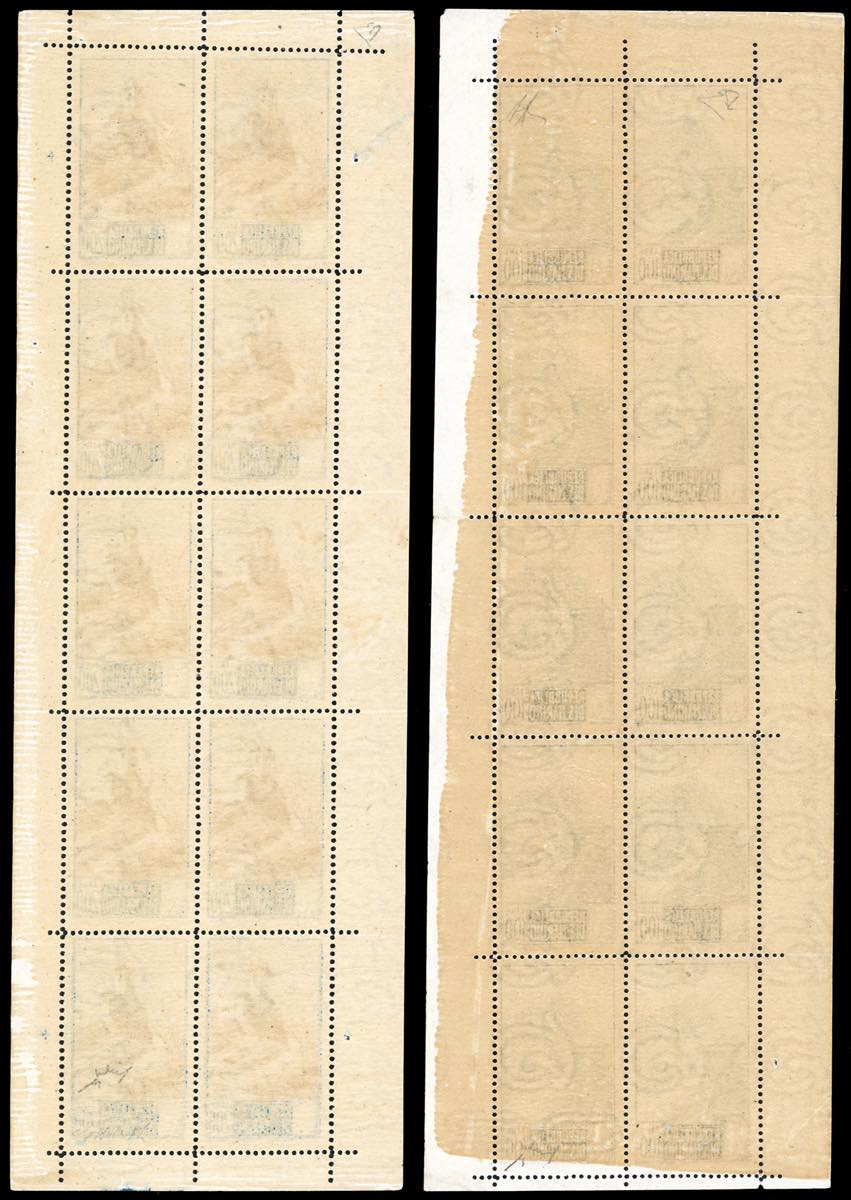 1949 - 100 e 200 lire Paesaggi, minifogli di dieci esemplari (10/11), lieve piega in corrispondenza della dentellatura, gomma originale ... Leggi tutto