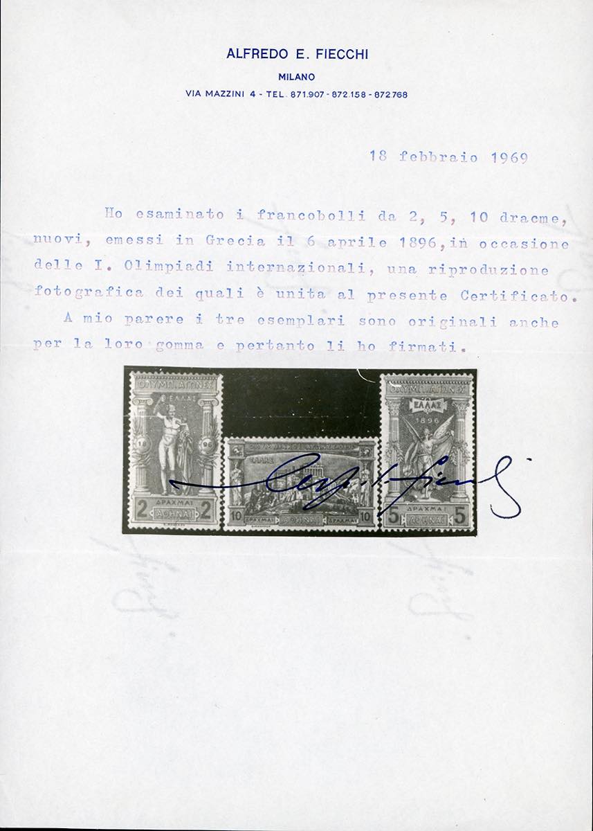 GRECIA 1896 - Olimpiadi, serie completa (Yv.101/112), gomma originale, integra per diversi esemplari, perfetti. Molto belli. A.Diena e cert. Fiecchi per gli alti valori.